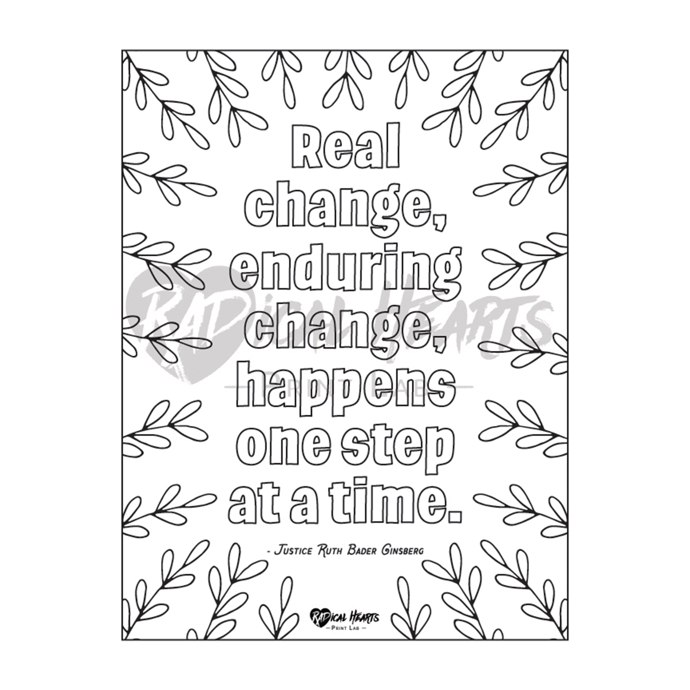 Enjoy this coloring sheet as you reflect on the power of this statement and honor the legacy of Ruth Bader Ginsberg. Write, color, and draw on this activity sheet whatever your Radical Heart desires. Save it for inspiration as you continue on your journey of creating real enduring change for us all!